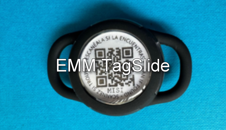 El EMM TagSlide tiene la misma tecnología que el EMM Tag (tres formas de contacto: escaneo NFC, código QR y número de serie impreso), pero se coloca directamente sobre el collar de tu mascota, deslizándolo por las aperturas laterales (disponibles en tres tamaños) del soporte. Así evitas piezas colgantes que puedan enredarse o caerse.